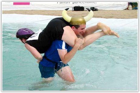 Забег с женой на плечах – занятие финских мужчин, которые таким образом соревнуются друг с другом. Цель забега – победить других участников соревнований, причем местность, по которой нужно бежать, никак нельзя назвать простой – здесь и ямы, и вода и много чего еще.