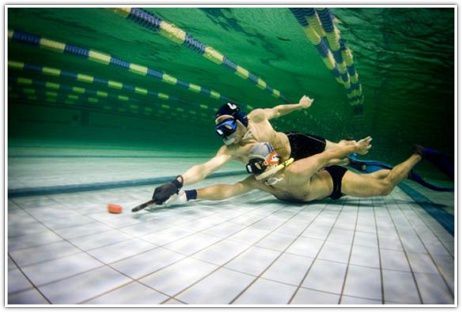 Определенной, подводный хоккей относится не к самым зрелищным видам спорта – кто сможет наблюдать за перемещением небольшой шайбы под толщей воды, пускай даже и в бассейн? Вода довольно сильно тормозит движения участников, что и делает игру такой смешной. И да, излишне уже упоминать, что это тоже вид спорта. Наверное, это наиболее спортивно выглядящее развлечение из всех представленных выше.